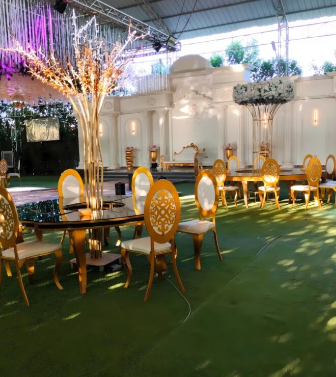 🔹 **تصميم فاخر وحديث**: استمتع بالديكورات الراقية والمساحات الواسعة التي تتناسب مع جميع المناسبات من حفلات الزفاف والخطوبة إلى المؤتمرات والحفلات الخاصة.